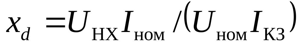 Тут UНХ, ІКЗ – відповідно напруга СГ у режимі неробочого ходу (НХ) (визначена по спрямленій характеристиці НХ) та усталений струм КЗ СГ. Електрорушійну силу Еq розраховують за формулою (7.4), в яку замість слід підставити хd.