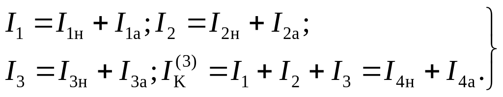 Дійсні значення струмів при трифазному КЗ визначають як алгебричну суму відповідних значень струмів нормального і власне аварійного режимів :