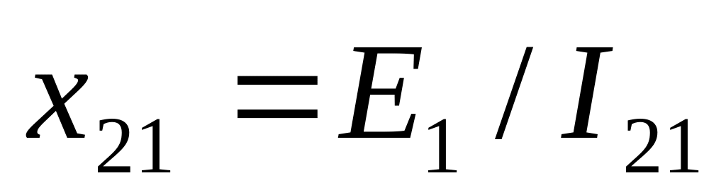 де х21 - взаємний опір, який характеризується відношенням ЕРС першої вітки до струму, що спричинюється цією ЕРС у другій вітці (при рівності нулю всіх інших ЕРС схеми),
