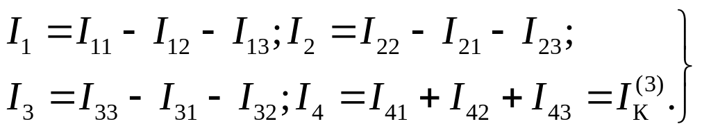 Дійсні значення струмів КЗ визначають алгебрично просумувавши відповідні значення струмів у вітках: