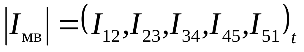 Розглянемо схему з п’ятьма вузлами (шостий, базовий вузол – земля), п’ятьма генераторними та п’ятьма міжвузловими вітками. Для зручності нумерацію вузлів виконаємо за годинниковою стрілкою.