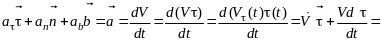и вектор ускорения точки всегда лежит в касательной плоскости и раскладывается на тангенциальное и нормальное направления: