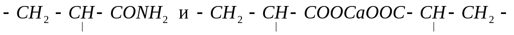 К анионным синтетическим флокулянтам относятся известковый и аммиачный полиакриламид. Они представляют собой сополимеры акриламида и акрилата кальция (или аммония), формулы основных звеньев