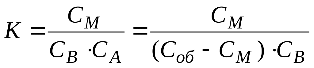 Если принять, что в исходном растворе содержание активного компонента СВ, то после растворения поглощаемого компонента А доля активного компонента, связанного с поглощенным А, составит