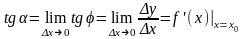 Чтобы вывести уравнение касательной к f(x) в точке М0=(x0,y0) можно поступить следующим образом. Нам известна точка, через которую она проходит, и ее угловой коэффициент, равный tg или f(x0), т.е. k0=f(x0). Уравнение такой прямой имеет вид: