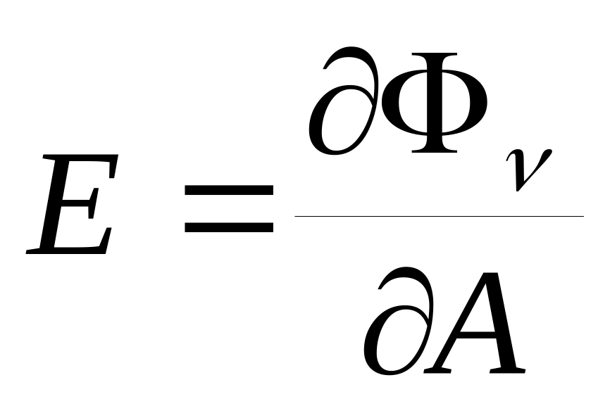 Освещенность (облученность) – отношение светового потока, падающего на поверхность, к её площади.