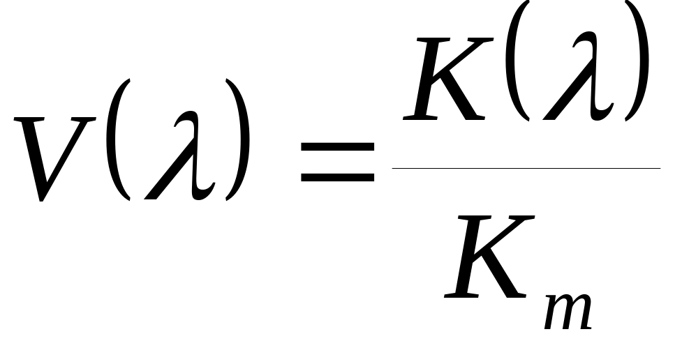 Относительная спектральная световая эффективность – величина, равная отношению спектральной световой эффективности на данной длине волны к максимально возможной световой эффективности Km=683 лм/Вт (на длине волны 555 нм):