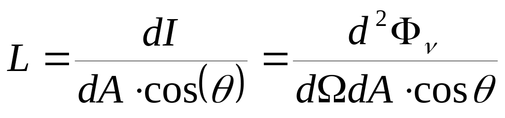 Где I – сила света, dA – участок излучающей поверхности, θ – угол между направлением излучения и перпендикуляром к излучающей поверхности.