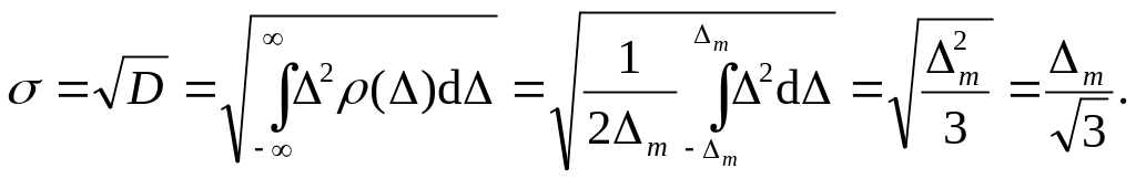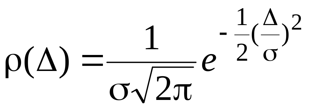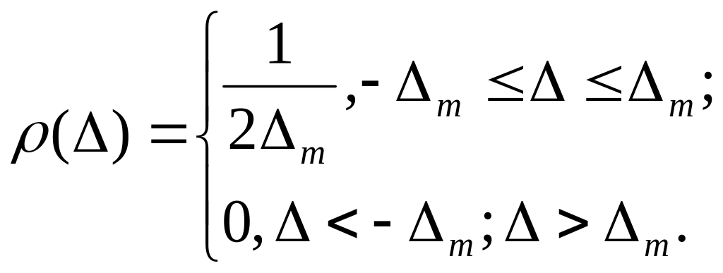 Все возможные случайные погрешности результата измерений, описываемых равномерным законом, расположены в интервале (–Dm, Dm), где Dm – максимальная погрешность. Аналитически плотность вероятности ρ(Δ) равномерного закона распределения определяется по формуле: