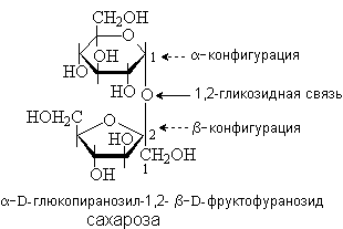 Сахароза содержится в сахарном тростнике, сахарной свекле, соках растений и плодах. Она состоит из остатков D-глюкозы и D-фруктозы, которые связаны за счет гликозидных гидроксилов. В составе сахарозы D-глюкоза находится в пиранозной, а D-фруктоза – в фуранозной форме. Сахароза – невосстанавливающий дисахарид