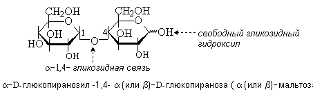 Восстанавливающие дисахаридыВ этих дисахаридах один из моносахаридных остатков участвует в образовании гликозидной связи за счет гидроксильной группы (чаще всего при С-4). В дисахариде имеется свободная полуацетальная гидроксильная группа, вследствие чего сохраняется способность к раскрытию цикла.Восстановительные свойства таких дисахаридов и мутаротация их растворов обусловлены цикло-оксо-таутомерией.Представителями восстанавливающих дисахаридов являются мальтоза, целлобиоза, лактозаНевосстанавливающие:К этой группе принадлежит небольшое число дисахаридов, важнейшим из которых является сахароза.