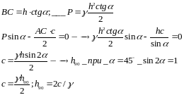 Рассмотрим для такого грунта устойчивость вертикального откоса АВ высотой h. Проведем след АС возможной поверхности обрушения в виде плоскости под углом α к горизонту, так как наименьшей площадью такой поверхности между точкамиА и С будет обладать плоскость. По всей этой плоскости будут действовать удельные силы сцепления с.