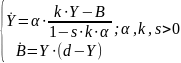 Пусть Y(t) – национальный продукт, Ye(t) – ожидаемый объем национального продукта, B(t), Bd(t) – фактический и желаемый объем оборотного капитала.