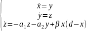 Во второй точке равновесия (d,0,0) матрица коэффициентов линеаризованной системы имеет вид