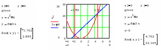 MathCAD дает возможность решать также и системы уравнений. Максимальное число уравнений и переменных равно 50. Результатом решения системы будет численное значение искомого корня.