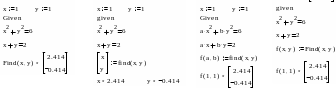 a := Find(x) – скаляр, var := Find(var1, var2,…) – вектор. Удобно при использовании решения системы в другом месте рабочего документа.