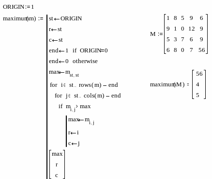 Составим программу–функцию для определения позиции первого нулевого элемента матрицы.