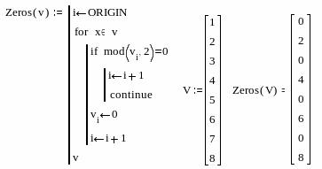 оставим программу–функцию для зануления нечетных элементов вектора.