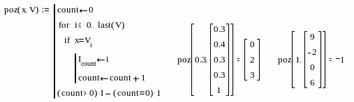 Составим программу–функцию для определения позиций заданного элемента в векторе.