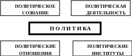 Структура политики. Политика – это сложная социальная система. Политика обеспечивает целостность общества благодаря взаимодействию ее структурных элементов.