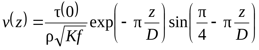 Рис.9.3.1 Структура дрейфового течения по модели Экмана (1902)