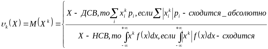 Начальным моментом порядка k (k принадлежит N) случайной величины Х называется мат.ожиданием k-й степени Х.