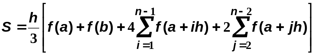 Для всего промежутка интегрирования [ a,b ] при четном значении n количества интервалов его разбиения эта формула имеет вид:
