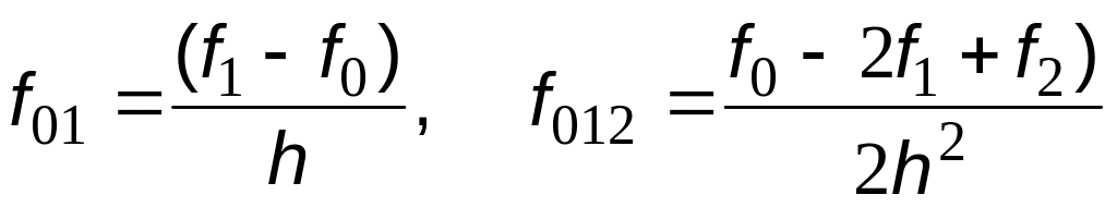 где f01, f012 - разделенные разности: