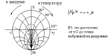 Реактивное сопротивление, имеющее емкостной характер соответствуют окружности расположенной слева..Для пассивных цепей модуль коэффициента отражения З меньше или равен 1 и все решения уравнения укладываются внутри круга Р=1