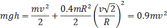 Для шара, скатывающегося с наклонного желоба высотой h, на основании закона сохранения энергии можно записать:
