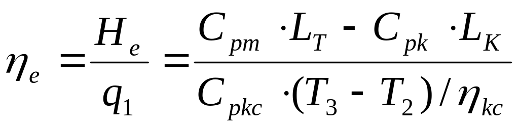 Показатели эффективности работы ГТУ определяются эффективностью идеального цикла при заданных параметрах – термическим КПД, который зависит от min и max температуры цикла и степенью приближения параметров реального цикла к параметрам идеального (зависит от КПД ОК, ГТ, КС).