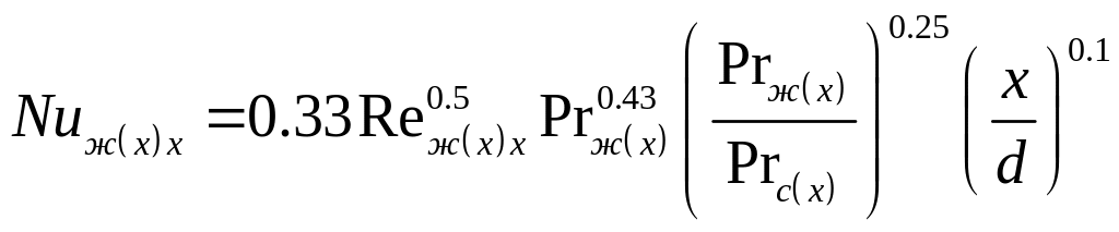 Определяющий размер – расстояние рассматриваемого сечения от начала трубы, а в качестве определяющей температуры — средняя в данном сечении температура жидкости.