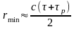 При контроле по совмещенной схеме величина rmin ограничивается длительностью t зондирующего импульса, временем tв восстановления чувствительности усилителя после воздействия зондирующего импульса и длительностью tp реверберационных шумов преобразователя.
