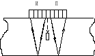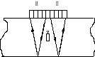 Чувствительность зеркально-теневого метода может быть установлена значением максимальной величины коэффициента выявляемости KД дефектов, еще обнаруживаемых при контроле. На рис.5.5 показан характер изменения амплитуды донных импульсов в зоне без дефекта и с дефектом при перемещении совмещенного или раздельного преобразователей.