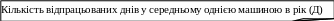відпрацьованих днів однією машиною за