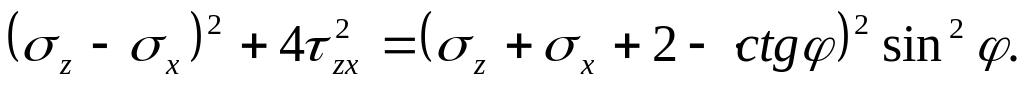 - •Яким чином впливає питоме зчеплення в зоні найпростішого напруженого стану на бічні напруги X при заданій напрузі z?