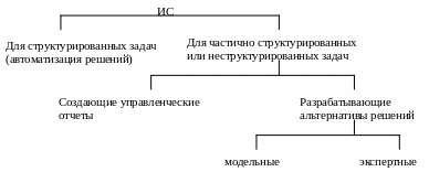У третьих большинство задач частично структурированы. Здесь на базе информации, даваемой ИС, определяющее решение принимает человек.