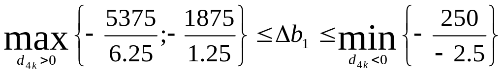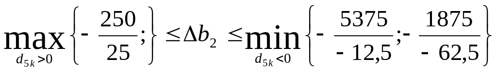 Предельные значения (нижняя и верхняя границы) изменения каждого из ресурсов, для которых двойственные оценки остаются неизменными, определяются еще и таким образом: