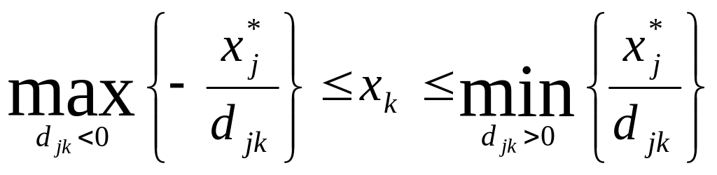 Если в план включается реализация невыгодного с точки зрения дохода товара, то объем возможной продажи в рамках устойчивости оптимального плана определяется следующим интервалом: