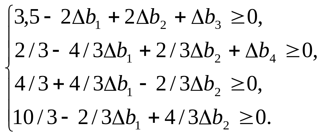 Следовательно, интерес представляет определение интервалов устойчивости (неизменности) двойственных оценок по отношению к возможным изменениям запасов ресурсов каждого вида ( + ). При этом условие устойчивости двойственных оценок