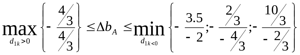 Аналогичные рассуждения можно провести по переменной симплексной таблицы , где соответственно расположенные коэффициенты указывают на увеличение дохода от реализации краски при изменении ресурса В за счет уменьшения производства краски для внутренних работ на 2/3 т и одновременного увеличения производства краски для наружных работ на 4/3 т в сутки. Значение целевой функции при этом составит