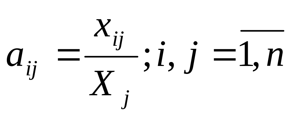 Определение 1. Коэффициент прямых материальных затрат показывает, какое количество продукции i-й отрасли необходимо, если учитывать только прямые затраты, для производства единицы продукции j-й отрасли.