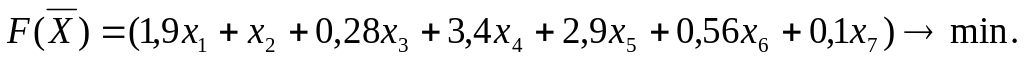 Общая стоимость рациона запишется в виде линейной целевой функции: