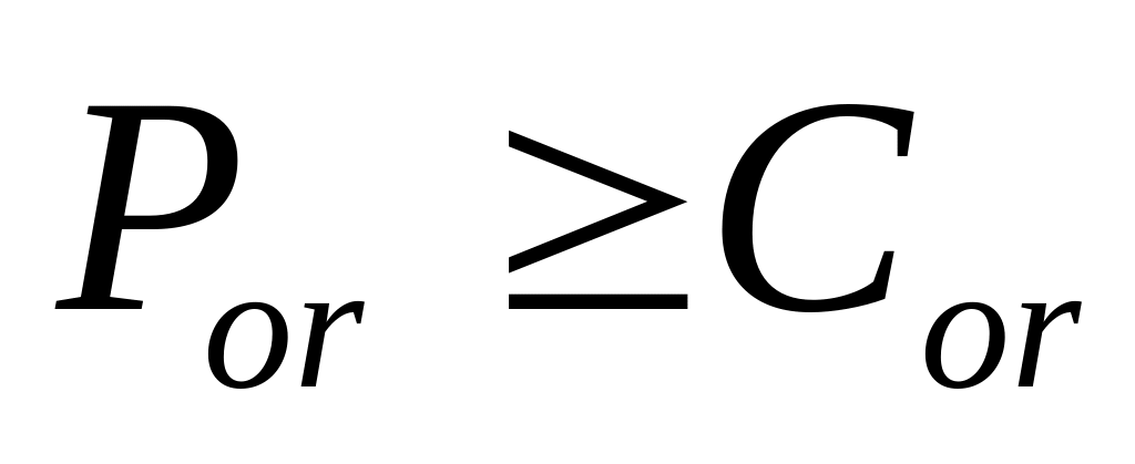 Во избежание дефектов на контактирующих поверхностях нагрузку подшипников ограничивают статической грузоподъёмностью. Проверка на отсутствие остаточных деформаций в зоне контакта тел качения с кольцами проводится по условию.