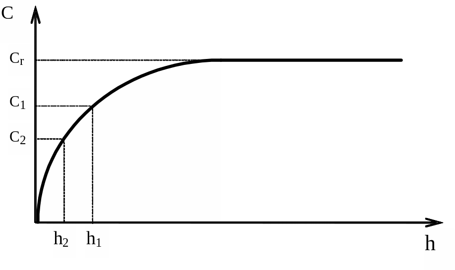 В велосиметрическом методе используется зависимость скорости распространения например изгибных волн в пластине от толщины этой пластины. Наличие расслоения внутри какого-либо слоя или наличие зоны нарушения склейки между слоями может рассматриваться как резкое уменьшение толщины изделия. В таком месте скорость распространения изгибных волн, возбужденных вибратором, уменьшается, что отмечается приемником по изменению фазы волны в точке приема. При этом с увеличением толщины изделия фазовая скорость с возрастает, стремясь к скорости cR рэлеевской волны (при f=const) (рисунок 20). Таким образом, велосиметрический метод по существу является фазовым методом. Работа ведется на частотах 20..70 кГц, посредством сухого контакта.