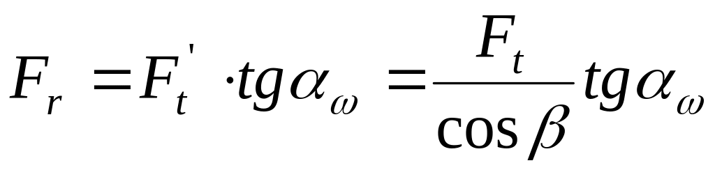 Fa – вредная сила, она смещает колесо и отрицательно влияет на подшипники, поэтому угол  ограничен ( = 8-20) Указанный недостаток косозубых передач устраняется в шевронных передачах,  до 40.
