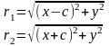 Расстояния от точки М(х, у) до фокусов эллипса можно представить так: