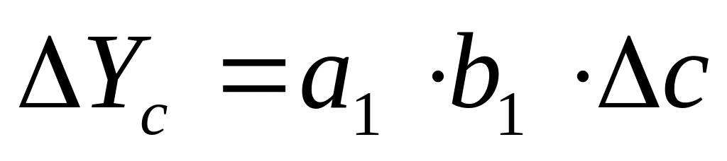 Спосіб абсолютних різниць. Цей спосіб є спрощеним варіантом способу ланцюгових підстановок. Як і останній, він використовується для розрахунку впливу факторів на приріст результативного показника в тих моделях, де результативний показник представлений у вигляді добутку факторів Y = а·в·с, або в змішаних моделях типу Y = (а – в)с. Якщо результативний показник розраховується як частка від ділення факторів або представлений залежністю факторів, то доцільно використовувати тільки спосіб ланцюгових підстановок як найуніверсальніший.
