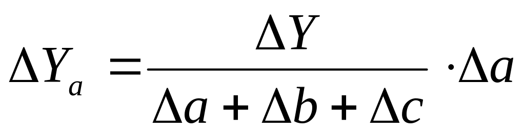 у моделях типу Y=a+b+c алгоритм розрахунку впливу факторів буде таким: