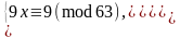 Вычтем из первого сравнения второе, получим соответственно: 2x≡16(mod 63), 2x≡-19(mod 63), 2x≡25(mod 63), 2x≡-10(mod 63), откуда